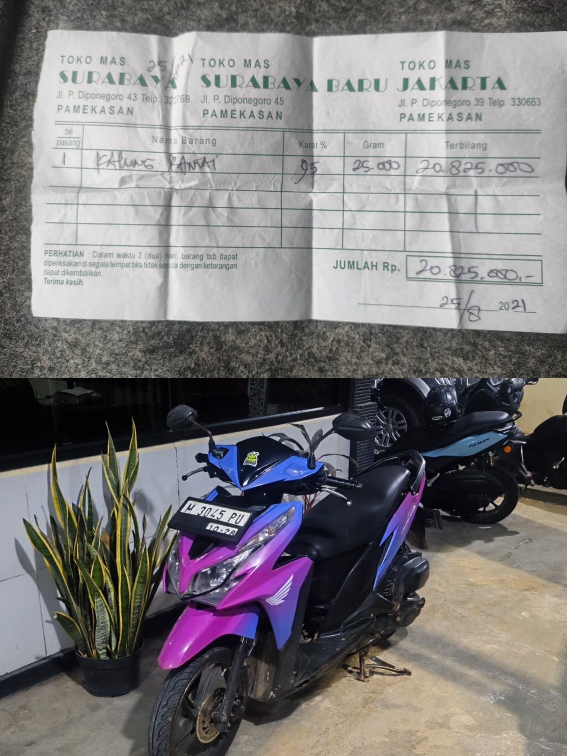 Polisi juga mengamankan sejumlah barang bukti berupa nota pembelian emas, rekaman CCTV dalam flashdisk, serta satu unit sepeda motor yang digunakan pelaku saat beraksi.